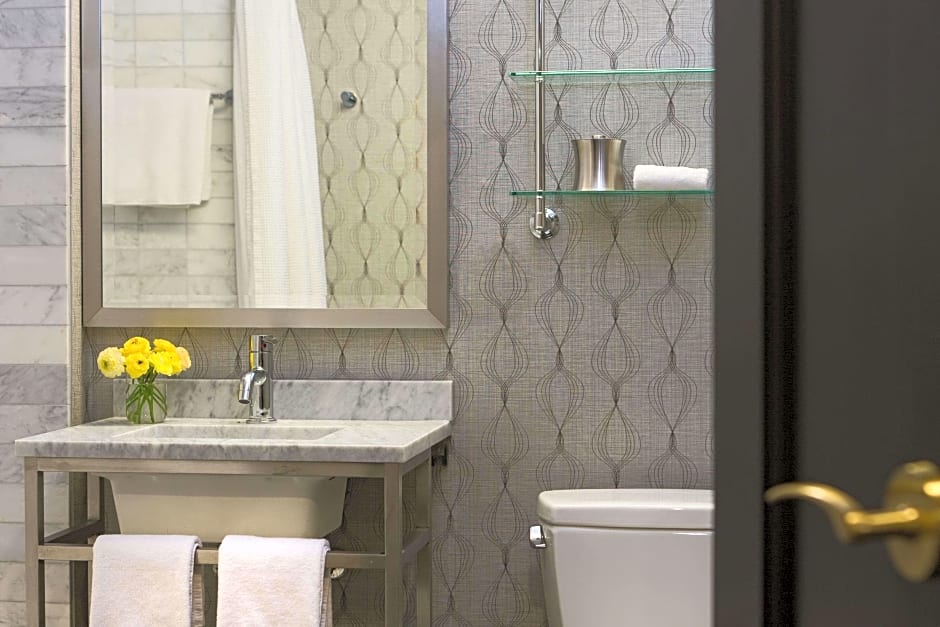 This spacious room includes a work desk with an ergonomic chair, a fully-stocked mini-bar with organic options, 37' LCD flat screen TV and sitting area. Extras include an alarm clock with USB charging ports.