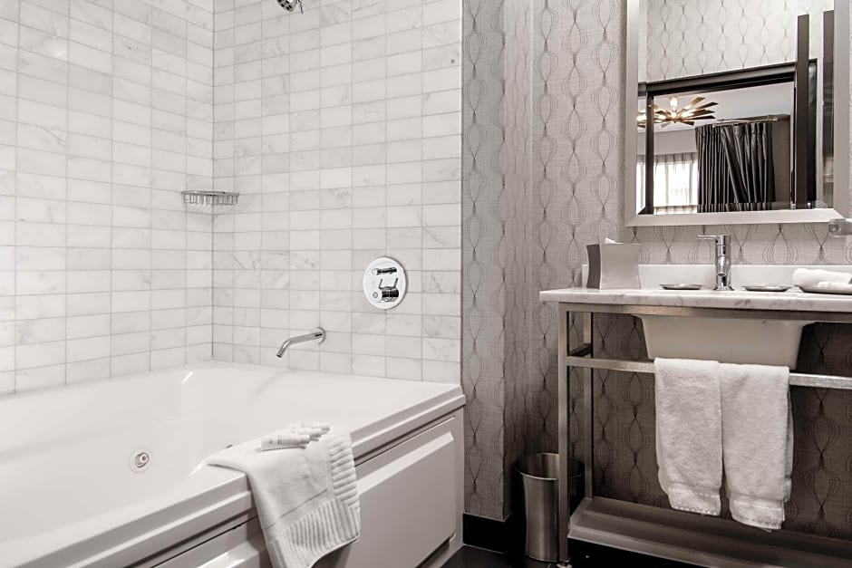This room is featuring a spacious living room with 37-inch flat-screen TV, this suite also provides a fully-stocked mini-bar and a large bathroom. Please note that the room rate is based on 2 guests. Maximum occupancy is 3 guests (see Hotel Policies). Bathroom features a two person soaking tub.